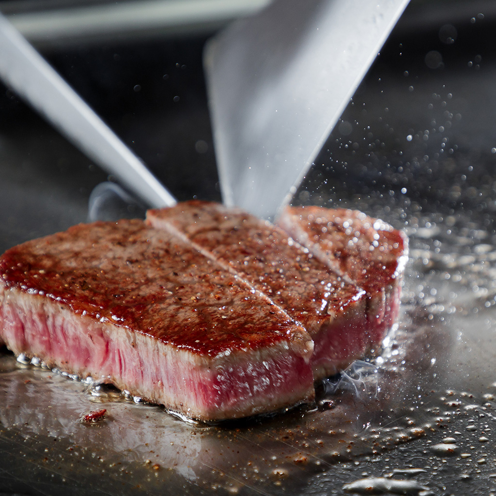 鉄板カウンターでは、担当シェフが目の前で調理いたします。 その場でお好みに調理された上質のビーフをはじめとする特選素材をごゆっくりお楽しみいただけます。 20席ご用意しております。 鉄板カウンターでは、担当シェフが目の前で調理いたします。 その場でお好みに調理された上質のビーフをはじめとする特選素材をごゆっくりお楽しみいただけます。 20席ご用意しております。 大きなカウンターは20名までご利用可能 品質の高いお肉を使用しています 目の前で担当シェフが調理します